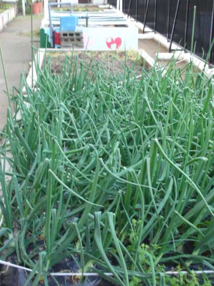 たまねぎが元気に育っています。ブロック塀が駒込柵に変わり、日光を受け、元気に育っています。