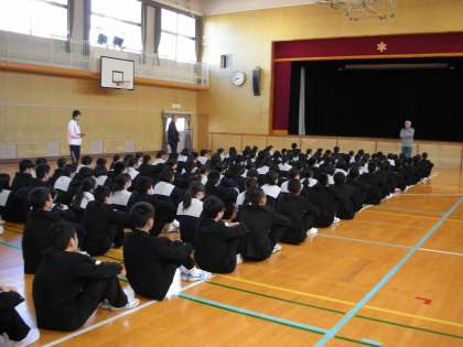 全校集会後に3年生が残って、木村先生からお話がありました。