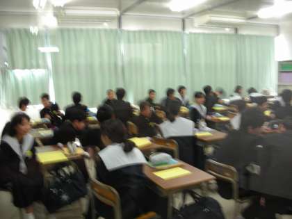 上は1年1組の英語の授業です。この時は、2人一組で、発音の練習を行っていました。