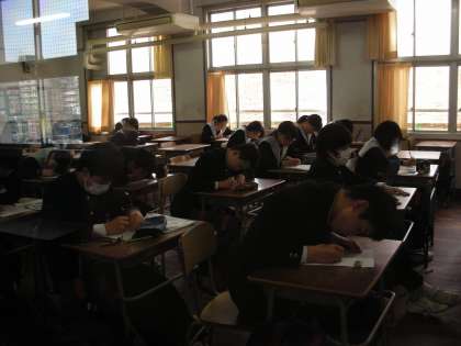 今年は、英語のテストがあります。しかも、『話すこと調査』というものがあり、パソコン室で音声を聞き、それに応え、録音するという方式です。パソコン室には、1クラスしか入室できません。そこで、4回生徒たちを入れ替えて実施しなければいけません。