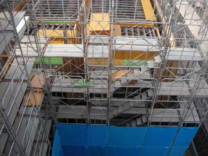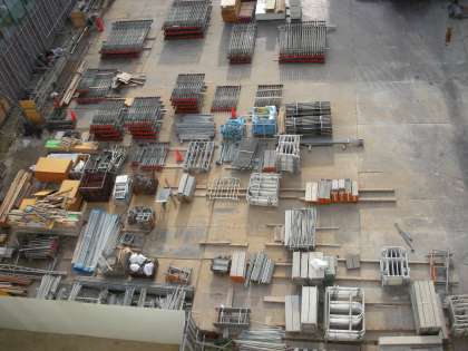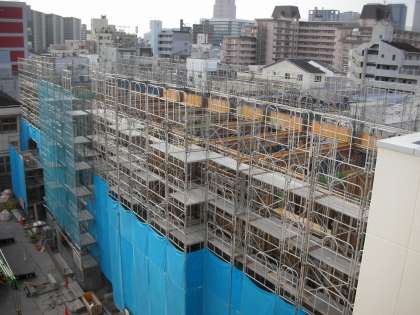 西館屋上から見た、朝の工事現場の様子です。
