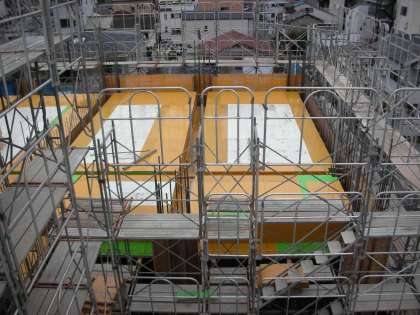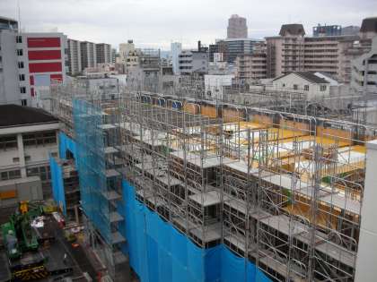 3階の天井部分が型枠で覆われ始めました。教室の形がわかるようになってきましたね。