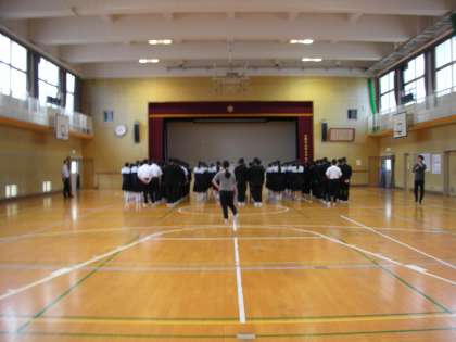 体育館を見ると、2年生の学年集会が開かれています。