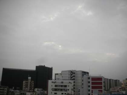 西館沖上から見た東の空です。雲が空全体を覆っています。太陽が雲に隠れています。