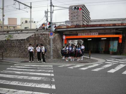 今日は、うっとおしい空模様ですが、生徒たちは元気に登校してきます。