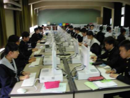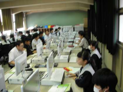 パソコンのタイピングの練習をしています。少しでもたくさんの文字を打つことができるように、集中してキーボードを叩いています。