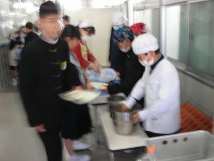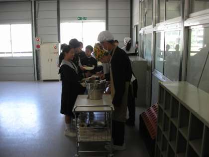 1年生もしっかりと給食当番の役目を果たしています。