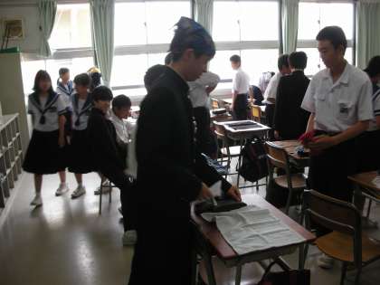 4時間目の授業が終わると、給食の準備を始めます。