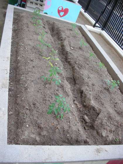 保健室裏のボランティア部の畑の様子です。