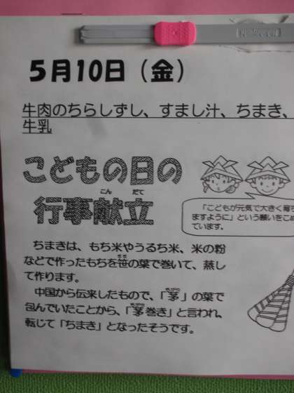 こどもの日の代表的なメニューということで、季節感あふれる給食でした。