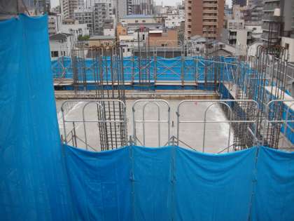 昨日、3階部分にコンクリートが注入されました。78台ものコンクリートミキサー車が学校に入りました。良いお天気のもとで無事、注入が終わりました。ご覧の通り、表面は乾き始めています。