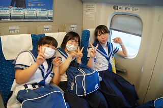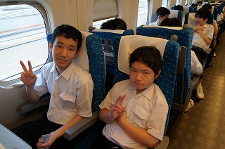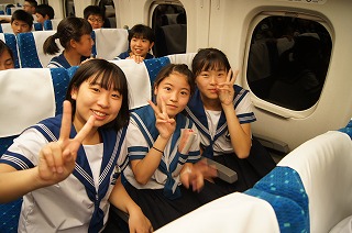 これから楽しい思い出を作ろうと、みんな笑顔でピースをしています。
