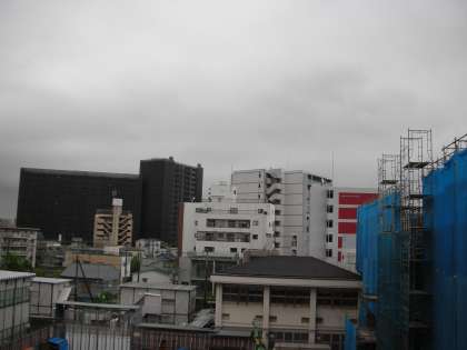 西館4階から見た東の空は、分厚い雲に覆われて太陽の存在がわからないほどです。
