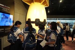 生徒たちは、長崎型原爆(ファットマン)の実物大の模型を見て、「この大きさの爆弾で、これだけ多くの命を奪ったのか!」と、改めて原爆の恐ろしさを感じたようです。