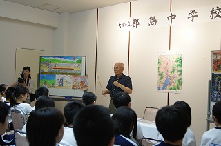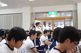 午後4時過ぎにホテル矢太楼本館に到着、午後5時から約1時間、平和学習を行いました。原爆被爆者の森田博満さんの講話を聴きました。