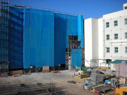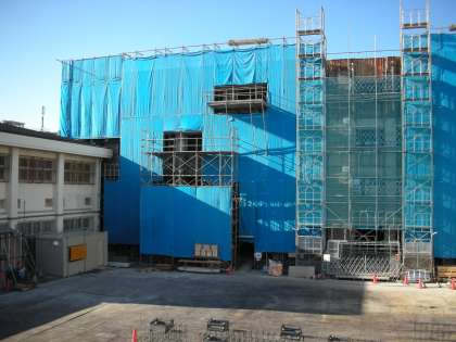 仮設校舎2階の校長室から見た南館の工事現場です。高く立派な建物です。