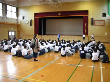 先生のお話に真剣に耳を傾けています。