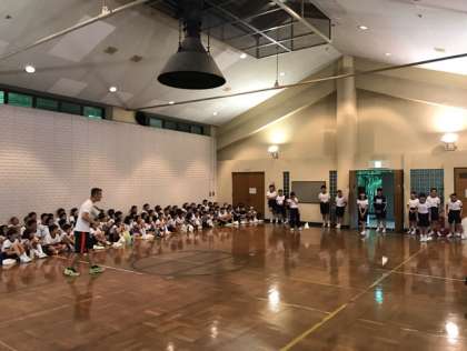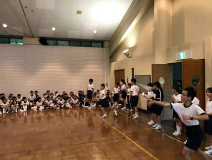 雨なので、午後の予定(フィールドワーク)を変更して、室内オリンピックを行いました。