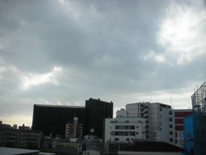 今朝は、蒸し暑くなりました。西館4階から見た東の空は、太陽が雲に覆われてその存在が隠されているようです。