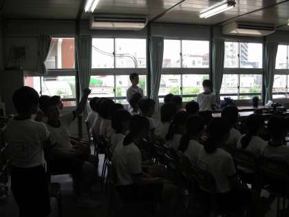 午前の協議の練習を終え、それぞれの教室でお弁当を食べました。その後、応援の練習を各教室で行いました。