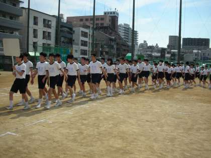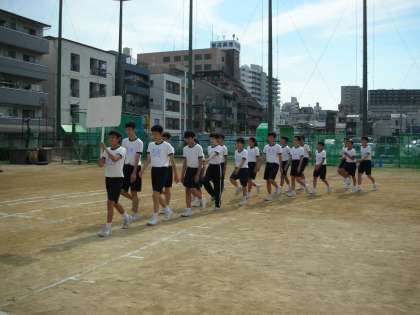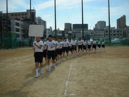 応援練習の終了後は、運動部の人は第2グラウンドに集まり、クラブ行進とクラブ対抗リレーの練習を行いました。