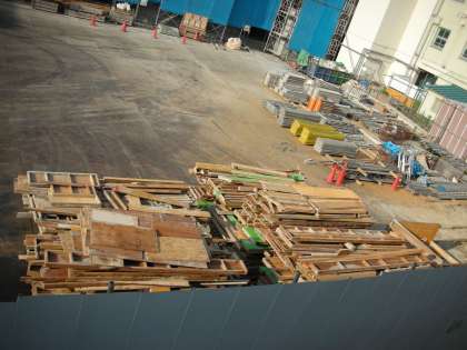 作業場には、取り外した型枠やこれから使われるであろう鉄筋や足場がきれいに整頓されています。