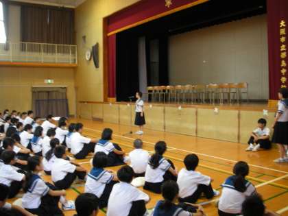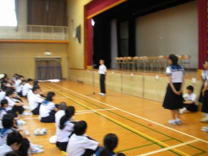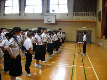 月曜日の朝は、全校集会が行われます。今日は、生徒会専門委員会からの報告がありました。
