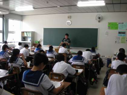 道徳の教科書の『読み物』を使っての授業です。生徒たちは、国語の授業とは異なり、先生からの問いかけに、自分の考えを頭の中でまとめています。