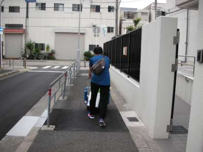 写真は、学校から必要な物品を第2グラウンドに搬出しているところです。