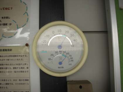 いつもの温度計は、午前7時現在、気温24度、湿度65パーセントを示しています。