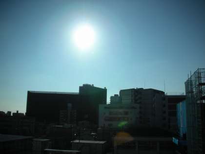 さて、西館4階から東の空です。今日は、夏の日差しが降り注いでいます。暑い一日になる模様です。
