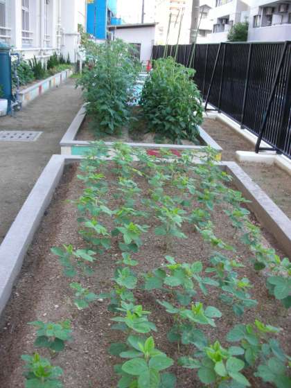 保健室裏のボランティア部の畑の様子です。