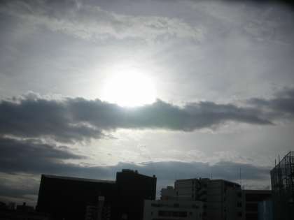 今日は、雲が多い朝です。朝日が雲の向こうから強い日差しを投げつけています。