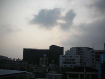 西館4階から見た東の空には、太陽がそれらの雲に隠れています。