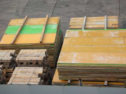 解体された型枠が、同じ大きさのものを文例して保管されています。