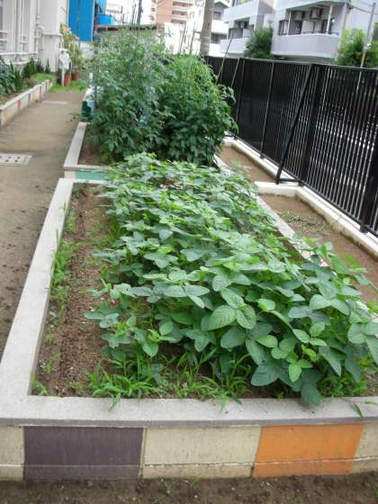 つい先日までは、玉ねぎが育っていたのですが、その後には、枝豆が育っています。