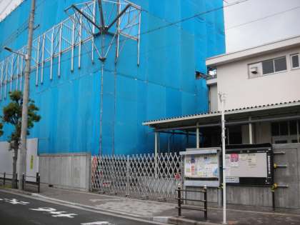 この場所に扉が設置されます。技術室と南館のつなぎ目にあたる場所で、給食を搬入するトラックが入るための扉になります。
