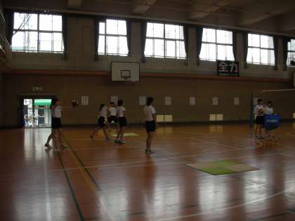 バレーボール部が練習をしています。自分一人でも得点できる可能性を秘めた『サーブ練習』を行っています。