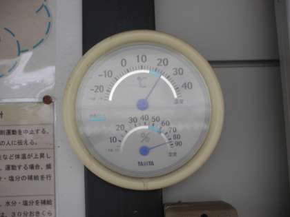 午前7時現在のいつもの温度計です。 気温25.4度、湿度85パーセントです。本当に蒸し暑いですね。