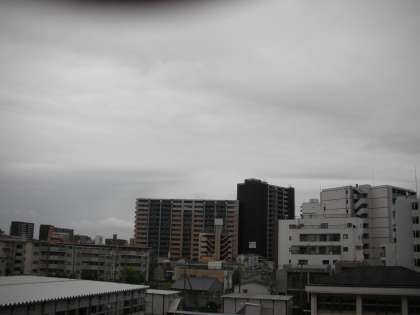 西館4階から見た東の空です。分厚い雲が空一面を覆いつくしています。