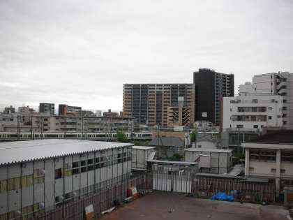 西館4階から見た東の空です。まだまだ雲が多いのですが、昨日よりは明るく、太陽が雲を蹴散らそうと頑張っているようです。