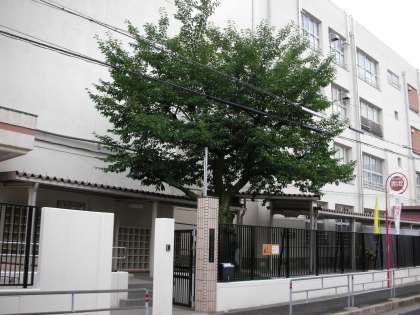 体育館前の正門です。工事中のみの門です。桜の木が来校者を迎えてくれます。