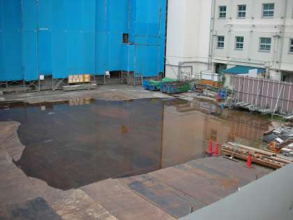 昨日の雨で、作業場に水たまりができました。結構、降ったようですね。