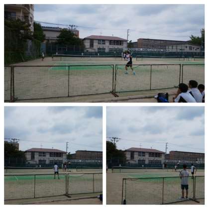 男子硬式テニス部は、大阪教育大学附属天王寺中学校と対戦しています。大阪府大会ですが、相手校での試合です。選手たちは、臆することなく、堂々と試合に挑んでいます。全力で頑張っています。