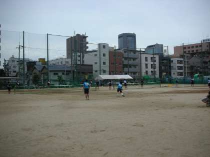 第2グラウンドでは、ソフトテニス部が試合をしています。