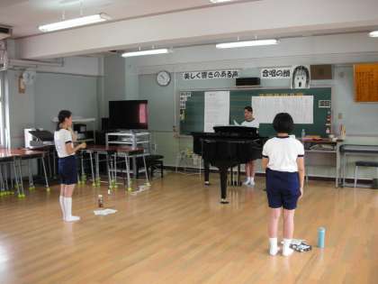 音楽室や普通教室を活用して、パートごとの練習をしています。