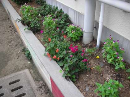 西館の裏の花壇と畑です。