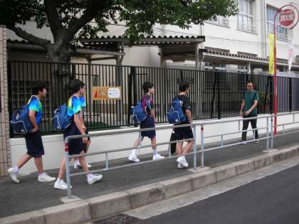 昨日の写真です。卓球部が学校を出発して、守口市民体育館に向かうところです。