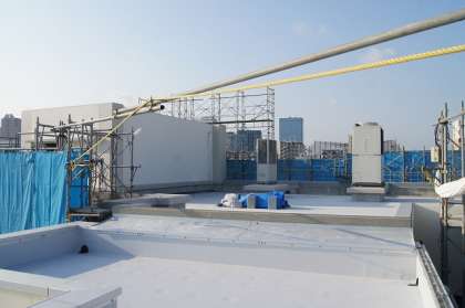 西館屋上から見た南館の屋上の様子です。 南館の搭屋が姿を見せています。型枠が外され、美しい姿が見えます。