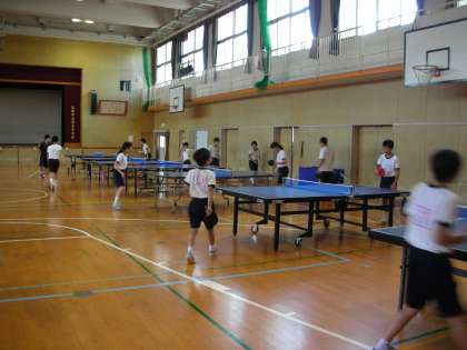 体育館では、卓球部が練習をしています。